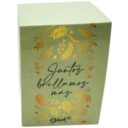 Esta velita se presenta rodeada de un bonito cartón con diseño y frase "Juntos brillamos más".