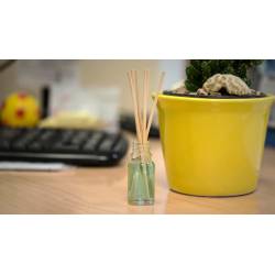 Ambientador de palitos difusores. En tarro de cristal de 10ml y disponible en aromas vainilla. Presentado en estuche individual de diseño en PVC.