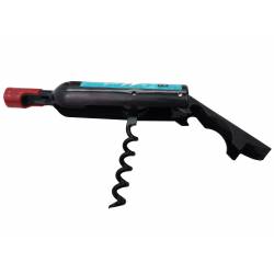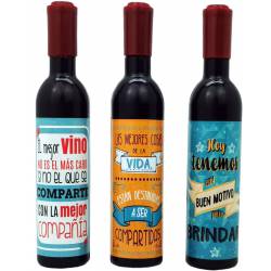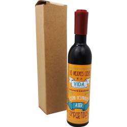 Nuevo sacacorchos abridor magnético con forma de botella de vino en color negro con pegatinas personalizadas con divertidas frases.