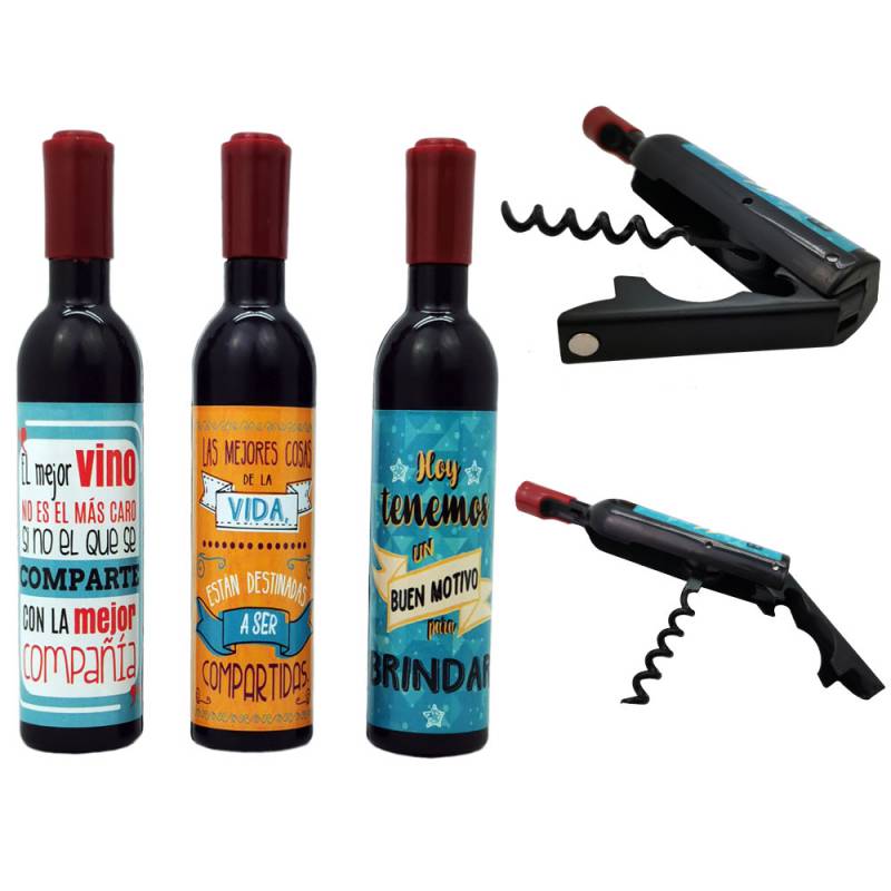 CAJA DE 192 SACACORCHOS ABRIDOR MAGNÉTICO FRASES