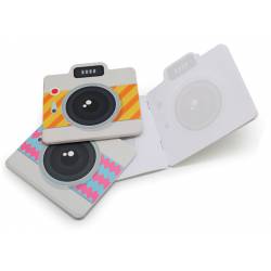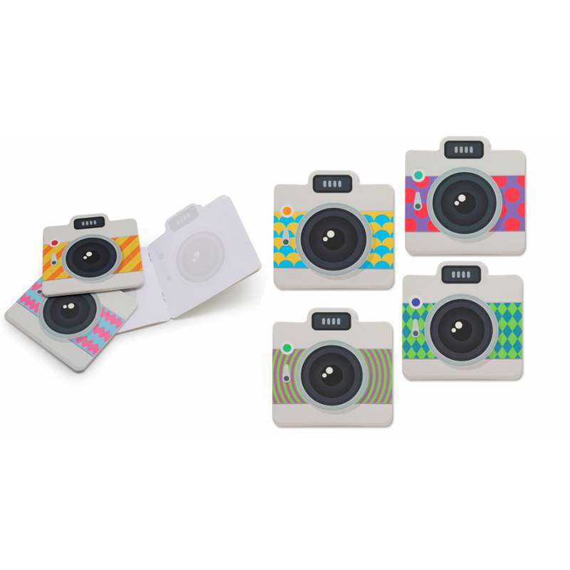 Pequeña libreta para notas en forma de cámara retro polaroid.